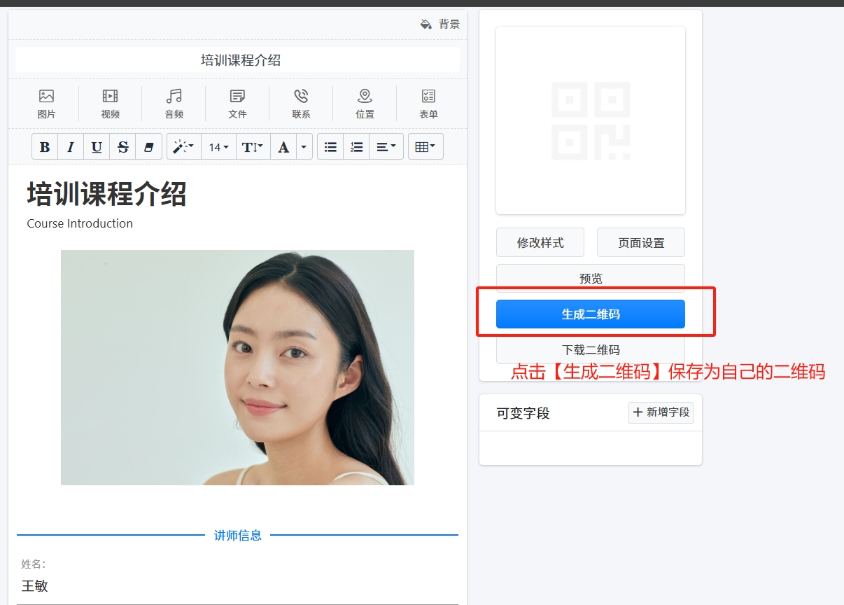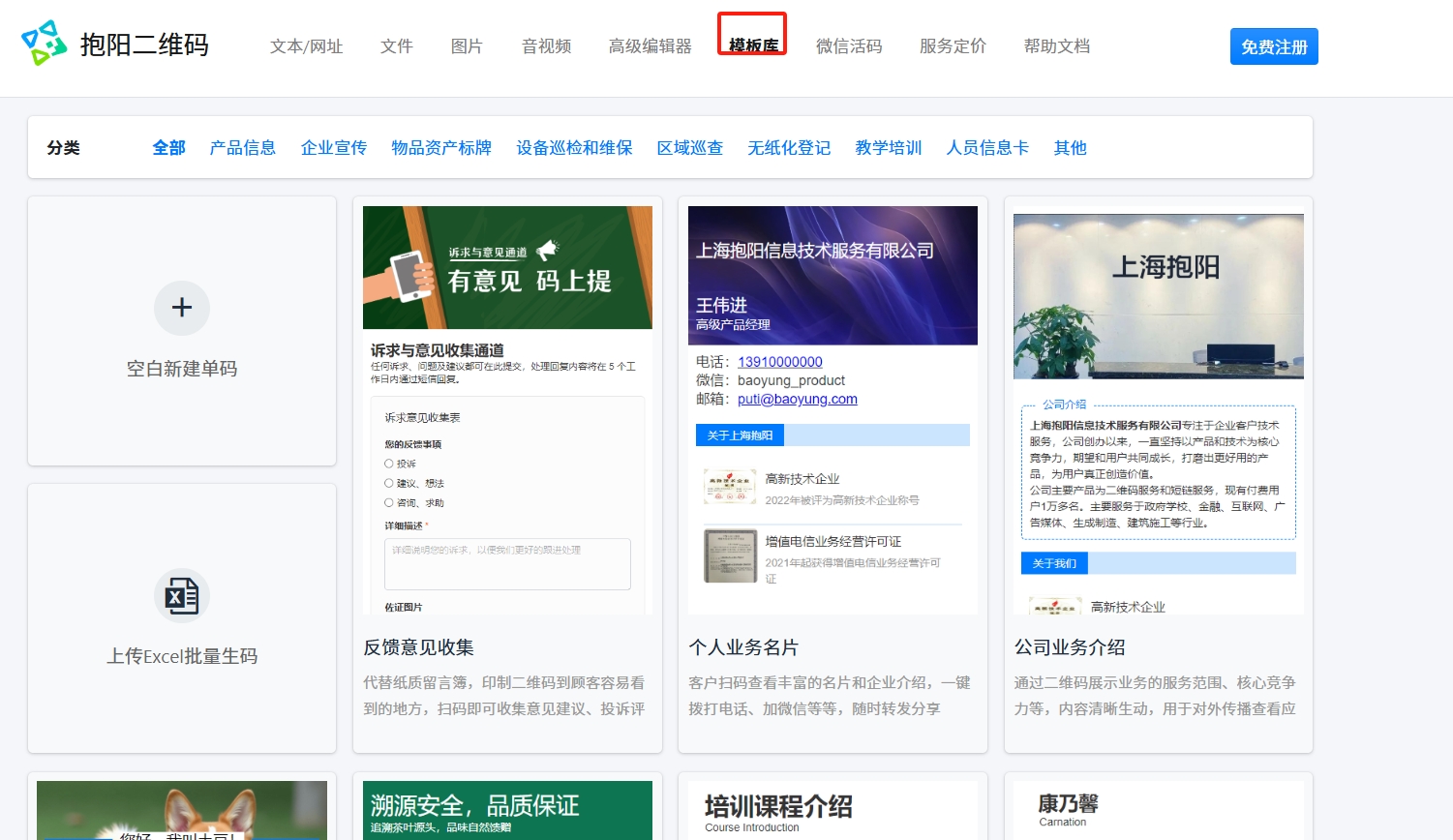 选择自己需要的模板,点击打开模板,保存后即可生成自己的二维码