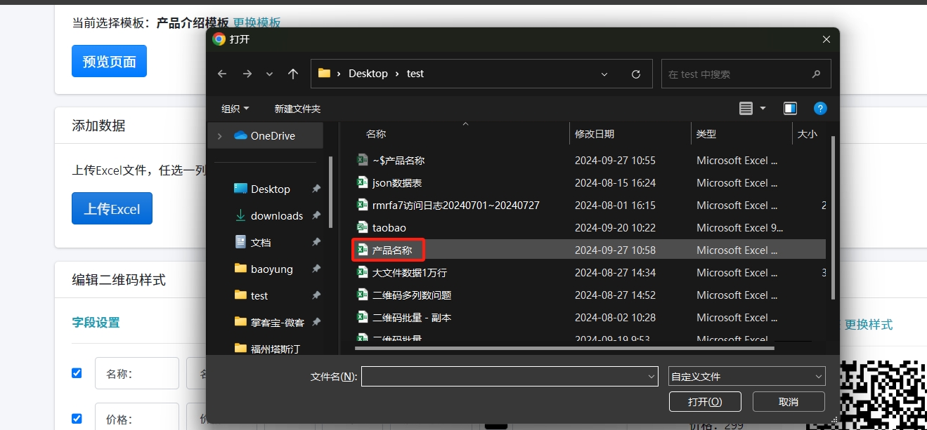 选择上传excel文件,可以把第一列设置为产品名称,这样容易查找
