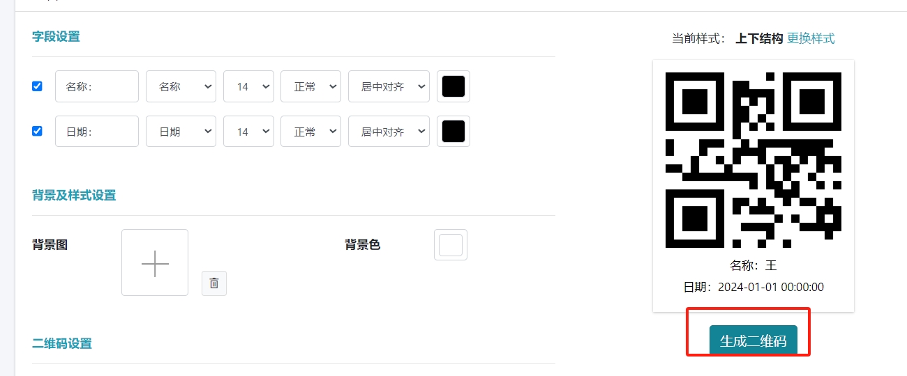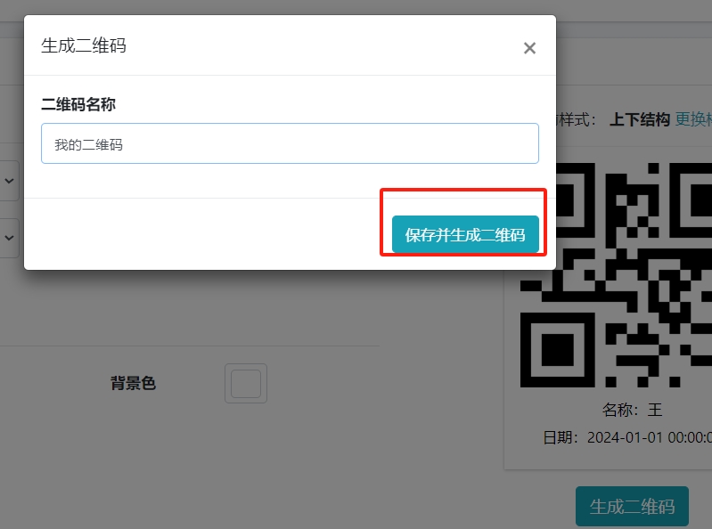 - 点击【生成二维码】按钮
