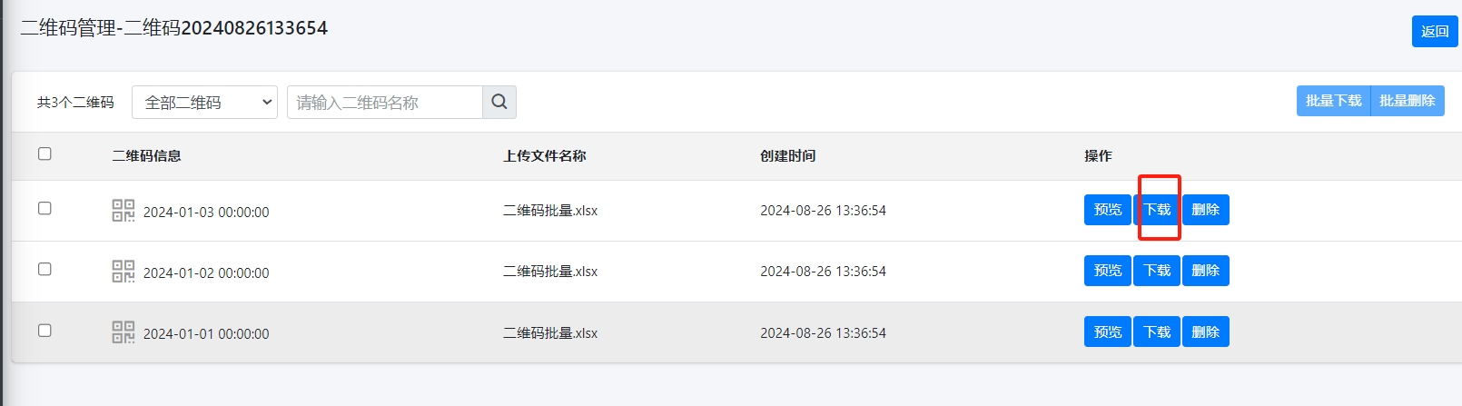 - 在二维码列表中,按左侧的【下载】菜单