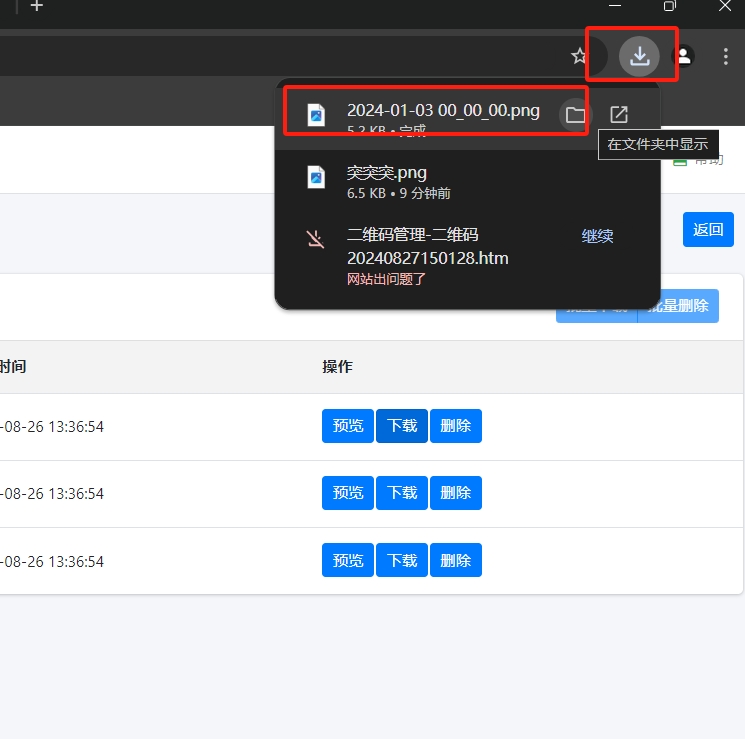 - 可以到浏览器的下载目录中查看刚才下载的二维码