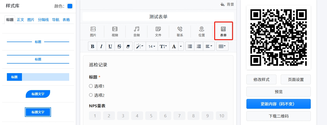 在活码的高级编辑器中,选择【表单】