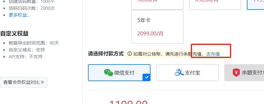 在购买会员页面,选择余额支付