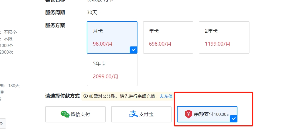 三、使用余额支付会员